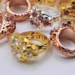Nuestros anillos FLORA tienen dos versiones, cada una con su encanto. Modelo LISO y BROCADO único, lleno de historia. ¿Sabíais que nuestro primer diseño nació por un fallo técnico? Así es, el modelo liso fue pionero, pero un pequeño accidente en el proceso en nuestro taller hizo que aparecieran estas burbujitas tan especiales, ¡y el resultado nos fascinó! Tanto, que este efecto será protagonista en muchas más piezas de nuestra colección. Porque a veces, los errores se convierten en magia.
