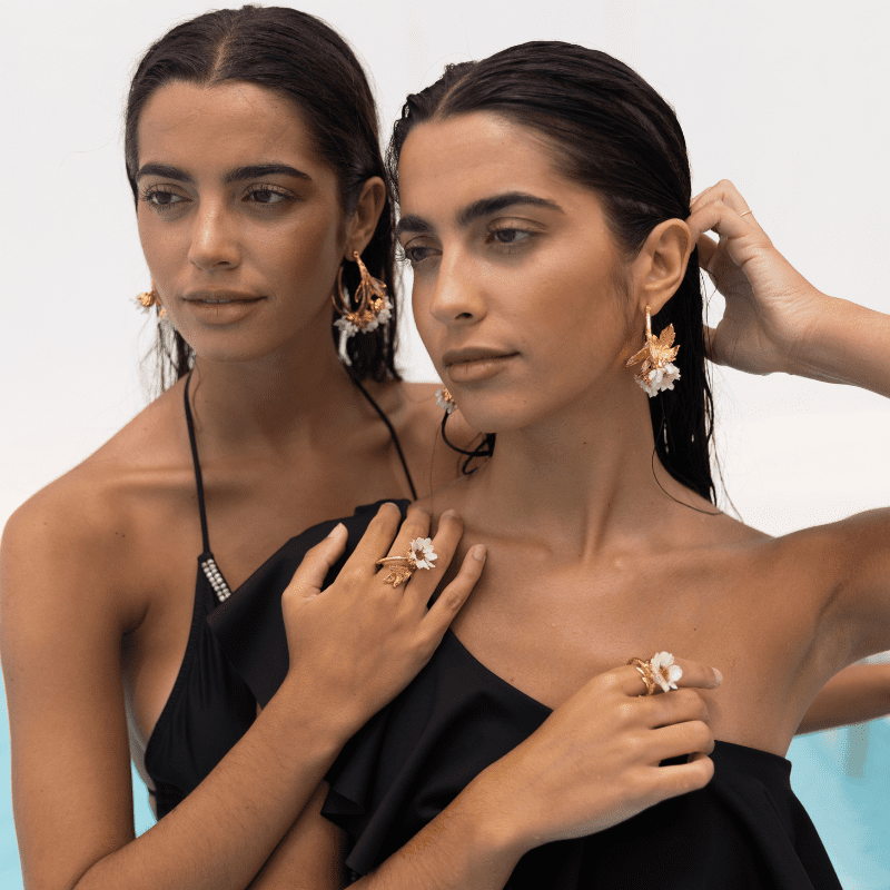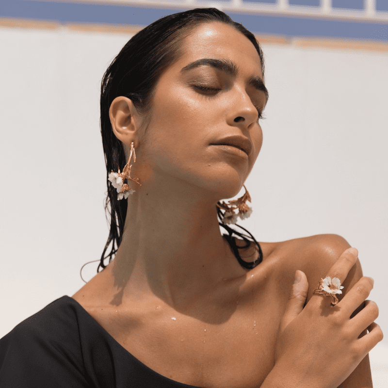 • Cada flor conserva su forma y esencia, incluyendo su cabo original, que se integra en e diseño como parte estructural de la joya.