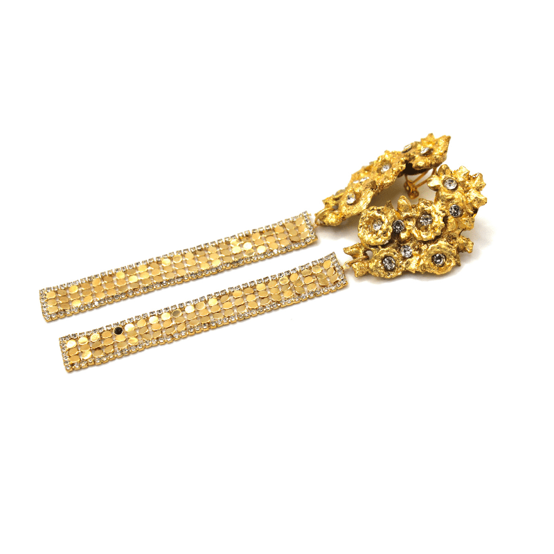 Pendiente GLOW BROCADO TIRA ORO con la flor brocada de CSDV y tira metálica.