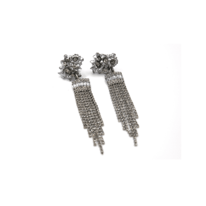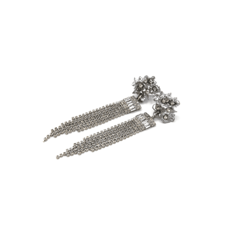 Pendiente GLOW MINI BROCADO PLATA con la flor brocada de CSDV mini y cristales en cascadas.