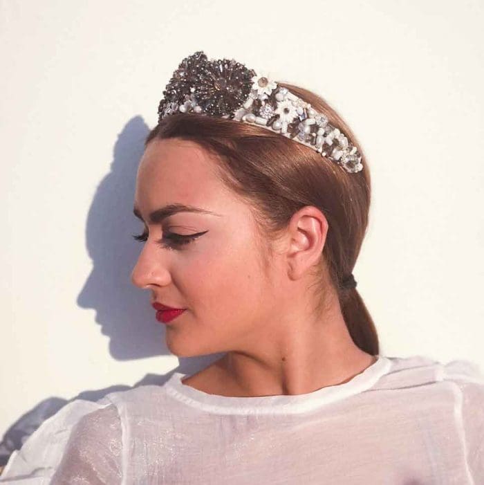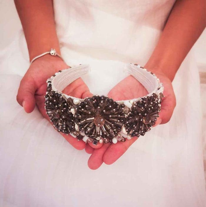 Este tocado, como todos los tocados de la colección novias de Carmen Sánchez de Ventura, están realizados de manera artesanal y exclusivamente bajo pedido.