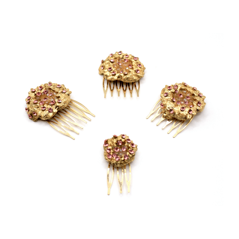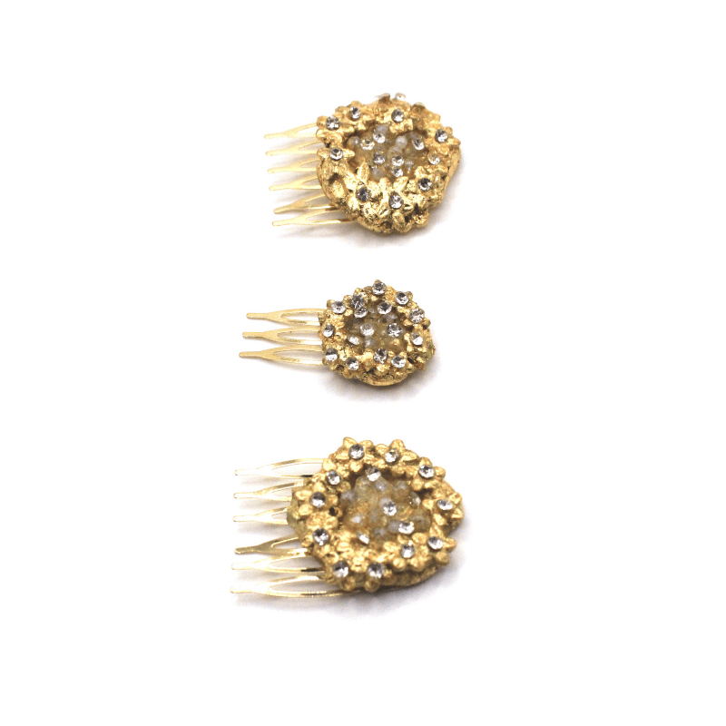 Todos los peinecillos son personalizables en color de base (dorados, platas u otros) y color de piedras. Si deseas uno de nuestros peinecillos en un color diferente a los disponibles en la web, por favor contacta con nosotros.
