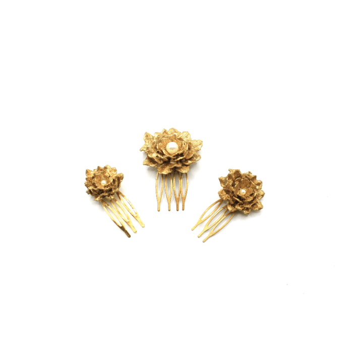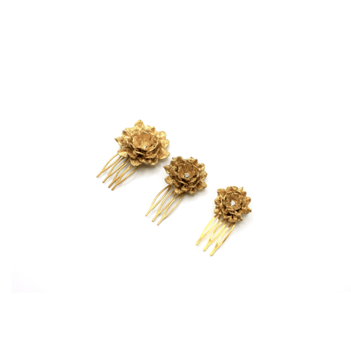 Todos los peinecillos son personalizables en color de base (dorados, platas u otros) y color de piedras. Si deseas uno de nuestros peinecillos en un color diferente a los disponibles en la web, por favor contacta con nosotros.